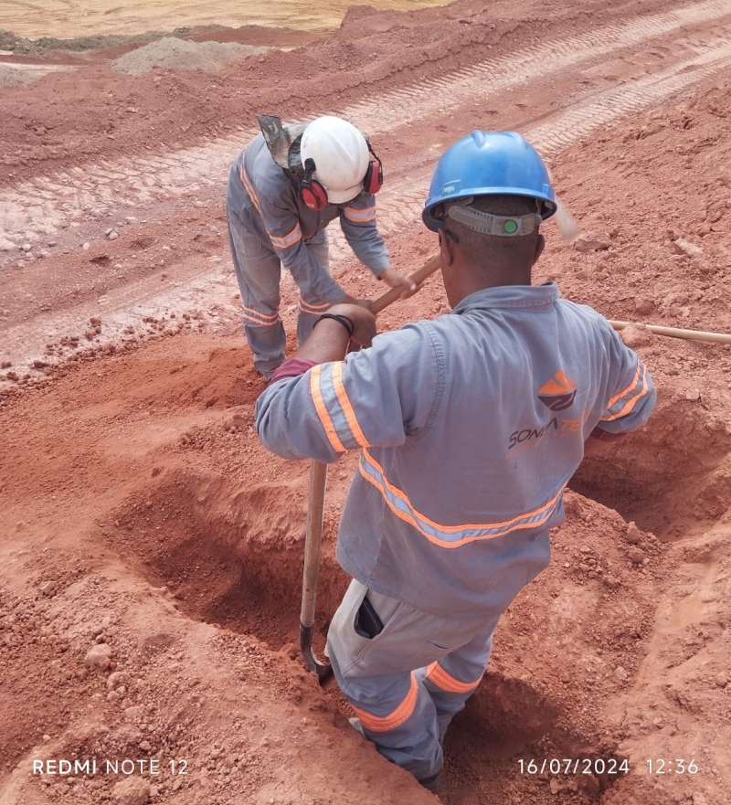Sondagem mista (rotativa em solo e rocha), instalação de indicador de nível d’água (INA), coleta de amostras indeformada (PIs) tipo bloco e ensaios laboratoriais, São Gabriel de Baunilha, COLATINA/ES